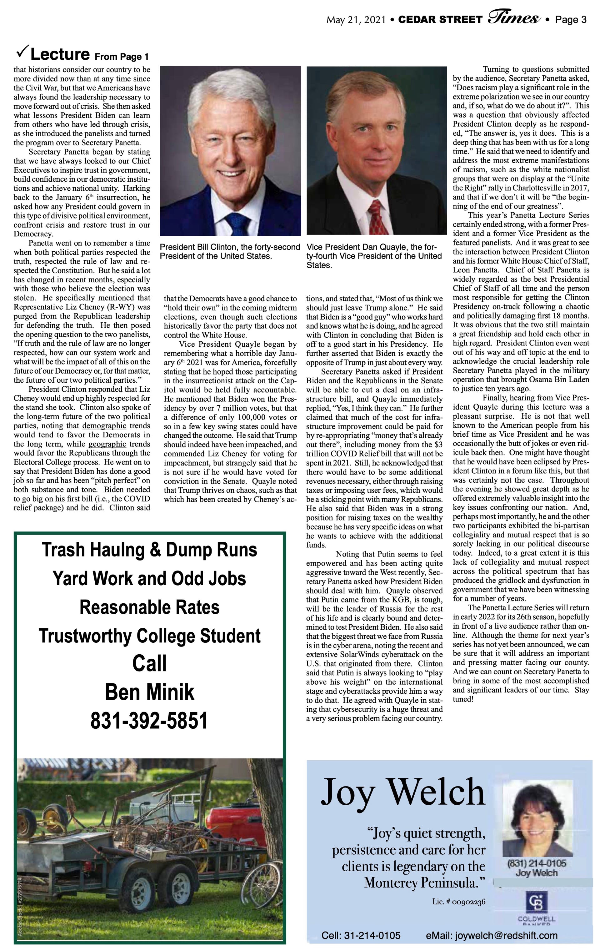 Cedar Street Times Articles (2021)